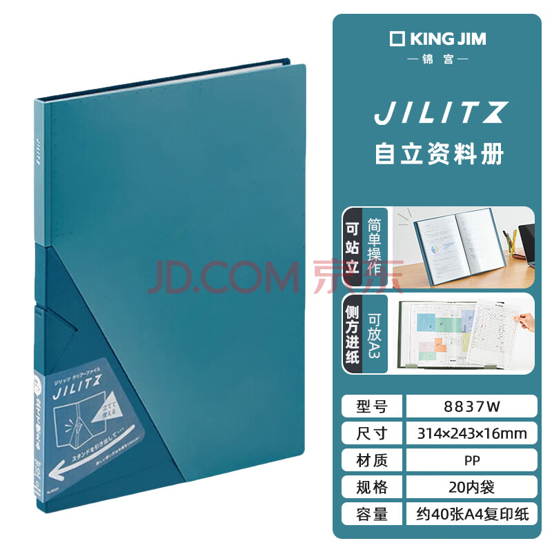 商品相册:锦宫(KINGJIM)自立资料册文件夹乐谱可站立A4商务办公横向式插页/40袋蓝色8837W第