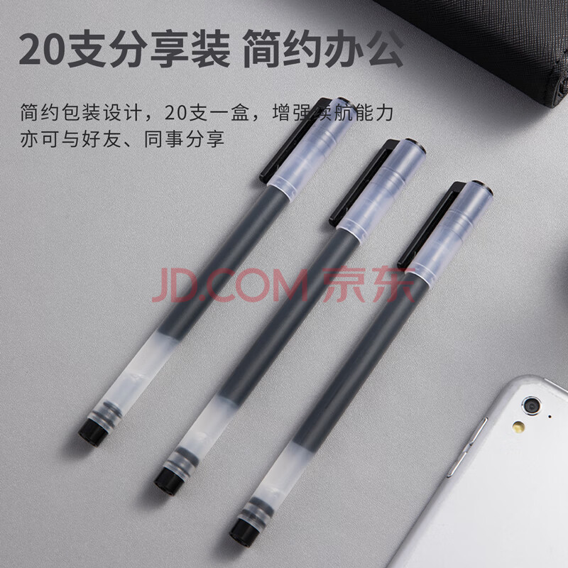 商品相册:得力(deli)大容量中性笔签字笔4倍书写 办公文具1600米巨能写 0.5mm子弹头 黑色20支/盒33003第