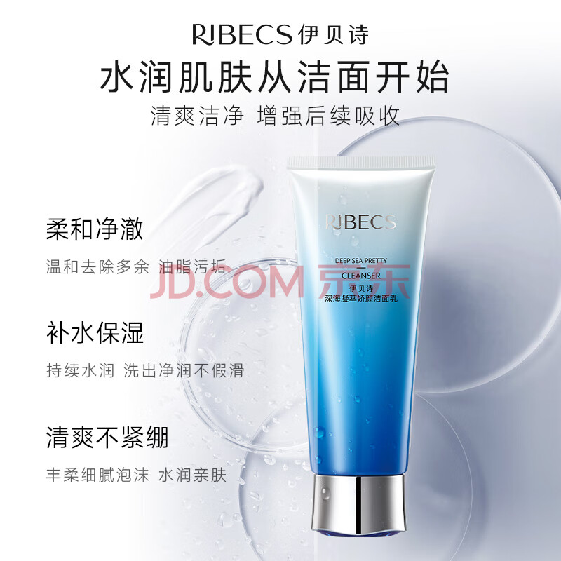 商品相册:伊贝诗深海凝萃洁面乳深度清洁调节水油保湿收缩毛孔温和洗面奶100g 第