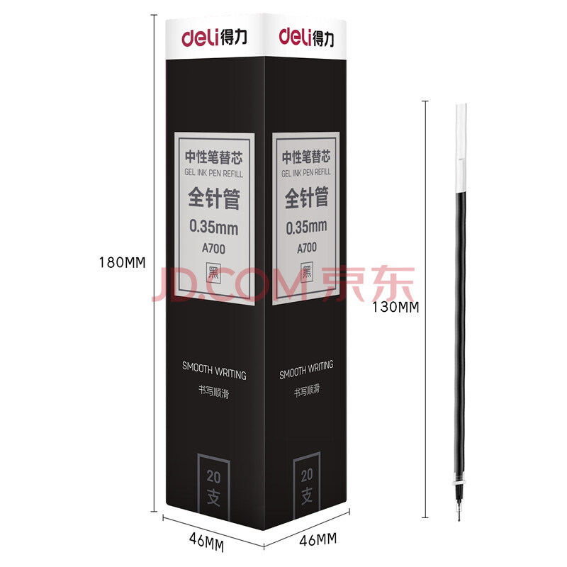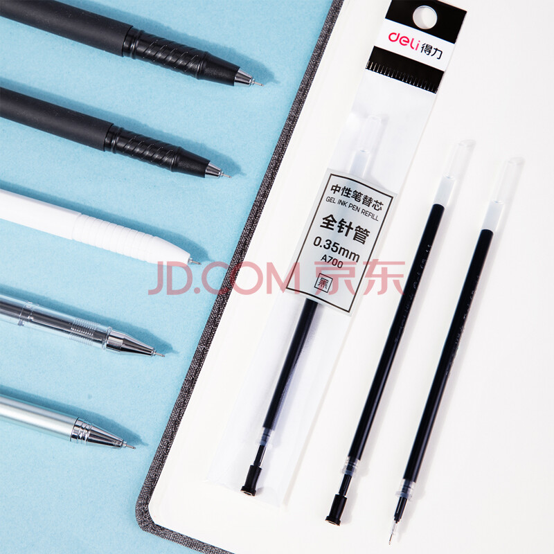 商品相册:得力(deli)【热门商品】0.35mm全针管黑色中性笔笔芯 水笔签字笔替芯20支/盒第
