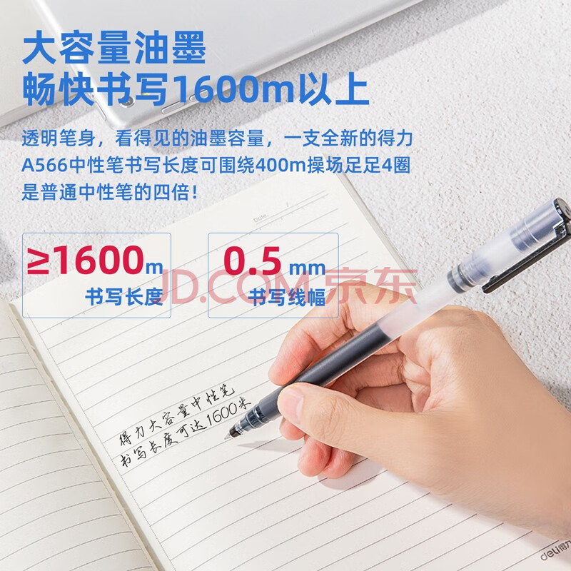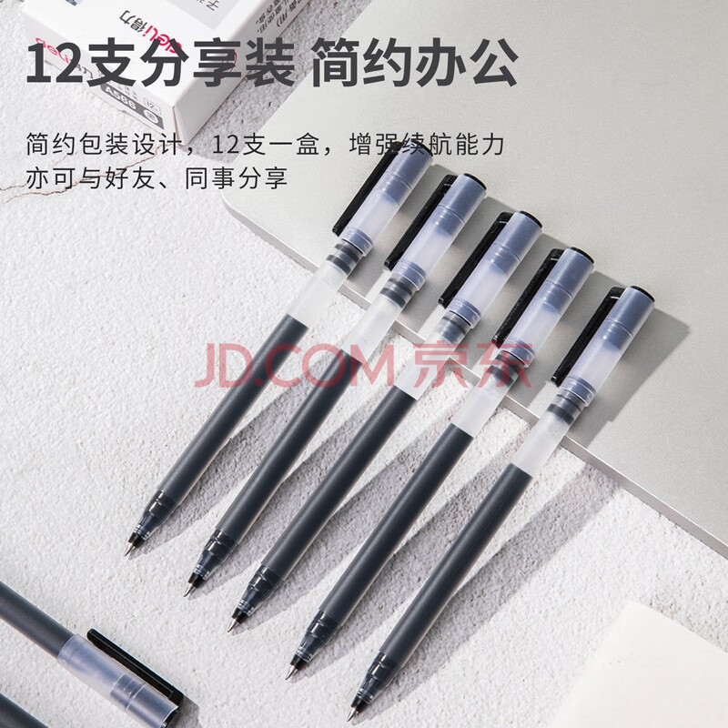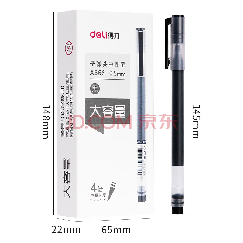 商品相册:得力(deli)巨能写大容量中性笔 升级4倍墨量0.5mm子弹头签字笔水笔 刷题必备学生 黑色 12支/盒A566第