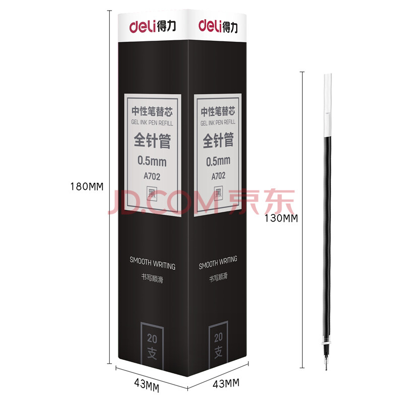 商品相册:得力(deli)【热门商品】0.5mm全针管拔帽中性笔笔芯 学生办公水笔签字笔替芯 黑色20支/盒 A702第