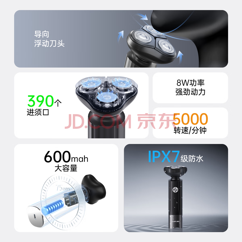 商品相册:康夫(CONFU)剃须刀电动刮胡刀男士礼物快充全身水洗干湿两用便携式三刀头胡须刀送男友G1暮夜黑新年礼物第