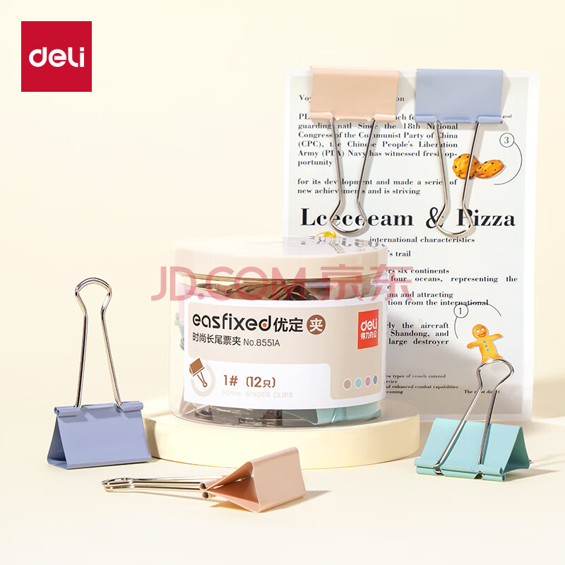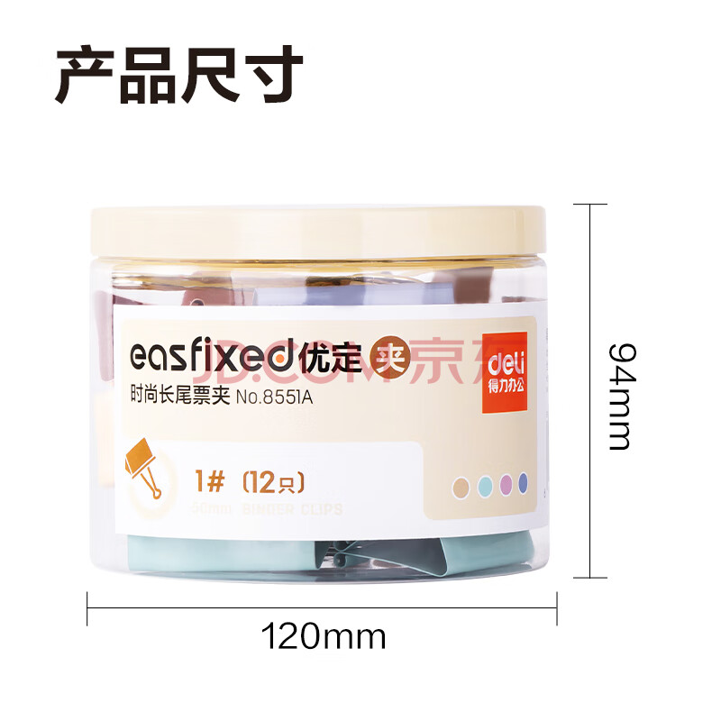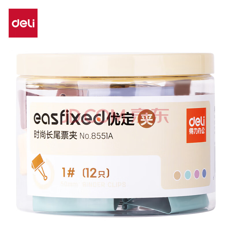 商品相册:得力(deli)【超级爆款】12只50mm超大号莫兰迪色时尚长尾票夹 升级新配色 12只/筒 8551A第