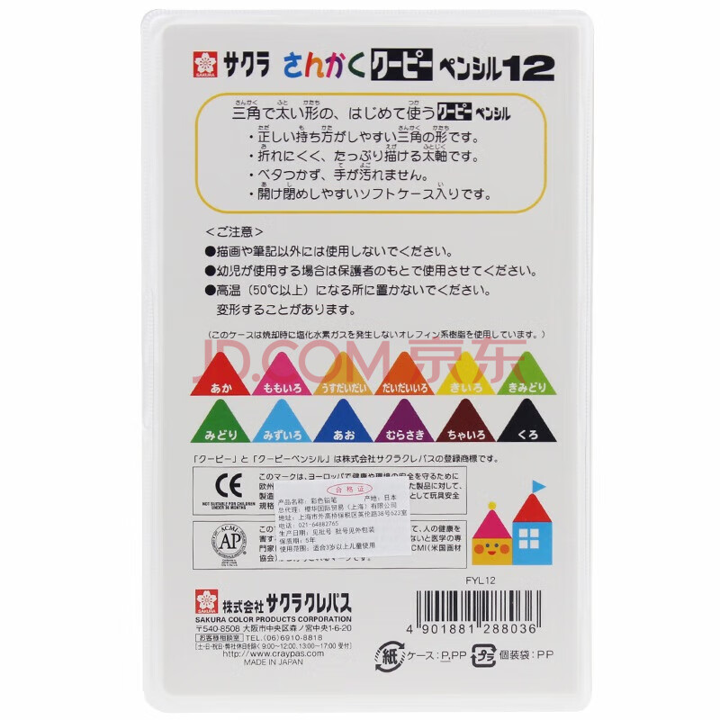 商品相册:樱花(SAKURA)三角塑料蜡笔12色套装笔轴全芯不脏手适合儿童美术绘画美术写生第