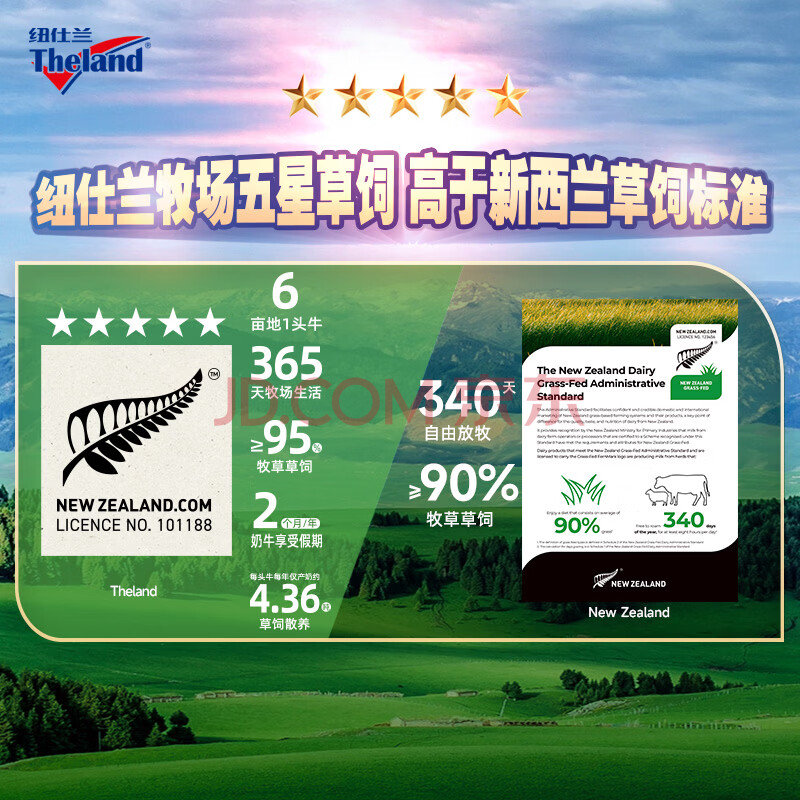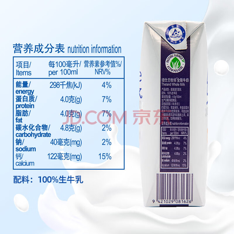 商品相册:纽仕兰新西兰草饲4.0g蛋白高钙全脂纯牛奶100%生牛乳250ml*24盒第