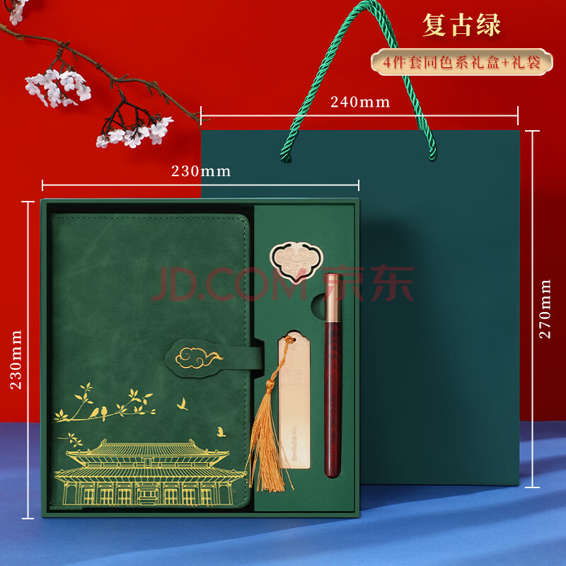 商品相册:嘉然恒 国潮笔记本本子套装故宫高颜值书签款精美记事本高端商务送男女老师伴手礼品实用定制 墨绿色第