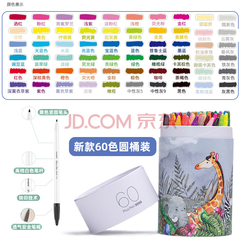 商品相册:慕那美(monami)新P3000纤维笔水性笔彩色中性笔套装水彩笔勾线笔手帐笔60色桶装04009Z60-T水彩笔第
