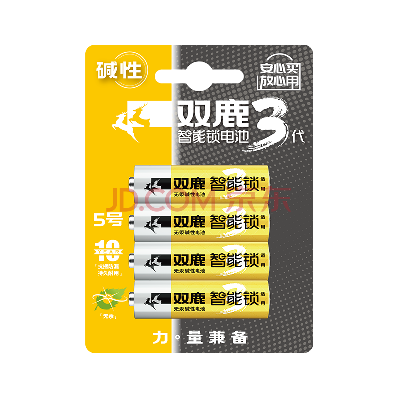 商品相册:双鹿智能锁电池4粒卡装 碱性5号适用指纹锁/电子门锁小米TCL德施曼PHILIPS鹿客VOC凯迪仕LR6/AA第