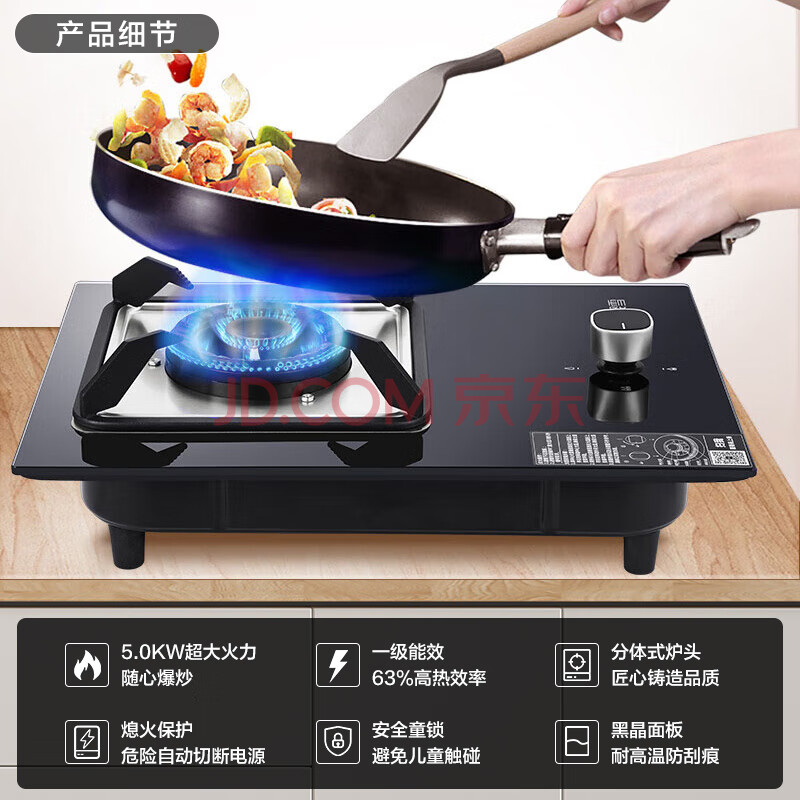 商品相册:樱雪(INSE)燃气灶单灶 台式嵌入式两用单眼燃气灶 5.2kW家用一级能效猛火灶具 钢化玻璃 Q2211(B)天然气第