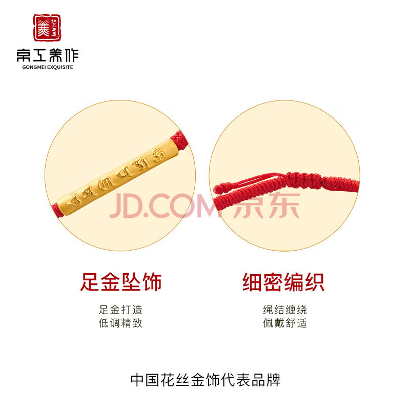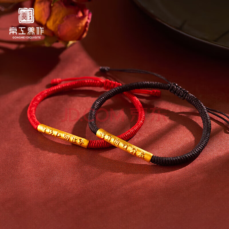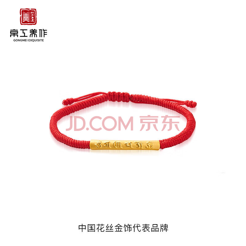商品相册:京工美作黄金手链女足金六字箴言手串情侣生日礼物送女友红绳按克约1.12g第1张/共6