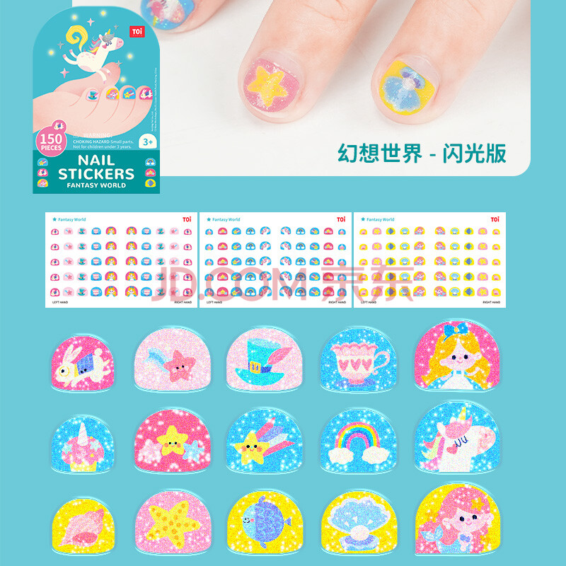 商品相册:TOI儿童指甲贴纸防水女孩美甲卡通贴生日礼物3-6岁小号 幻想世界第