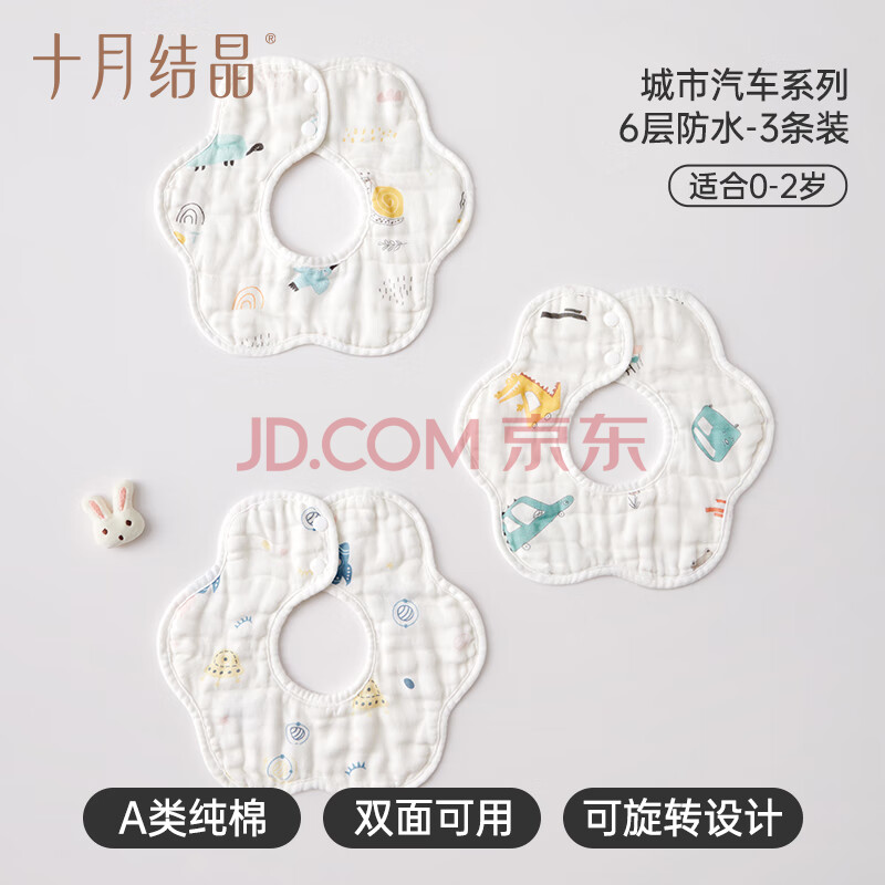 商品相册:十月结晶宝宝围嘴吃饭口水巾6层纯棉防水围兜饭兜口水巾360度可旋转 3条装第