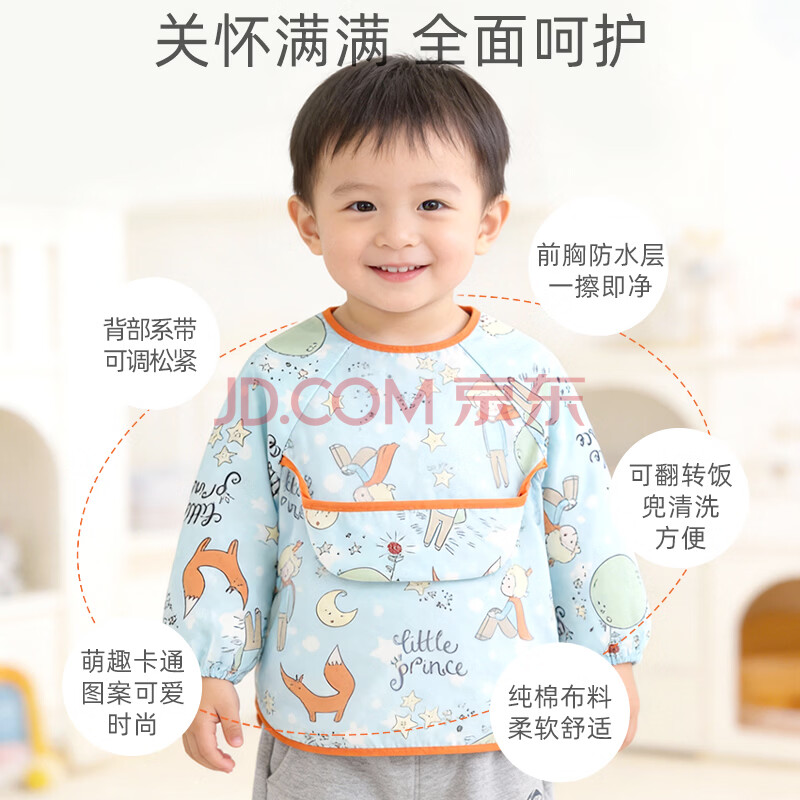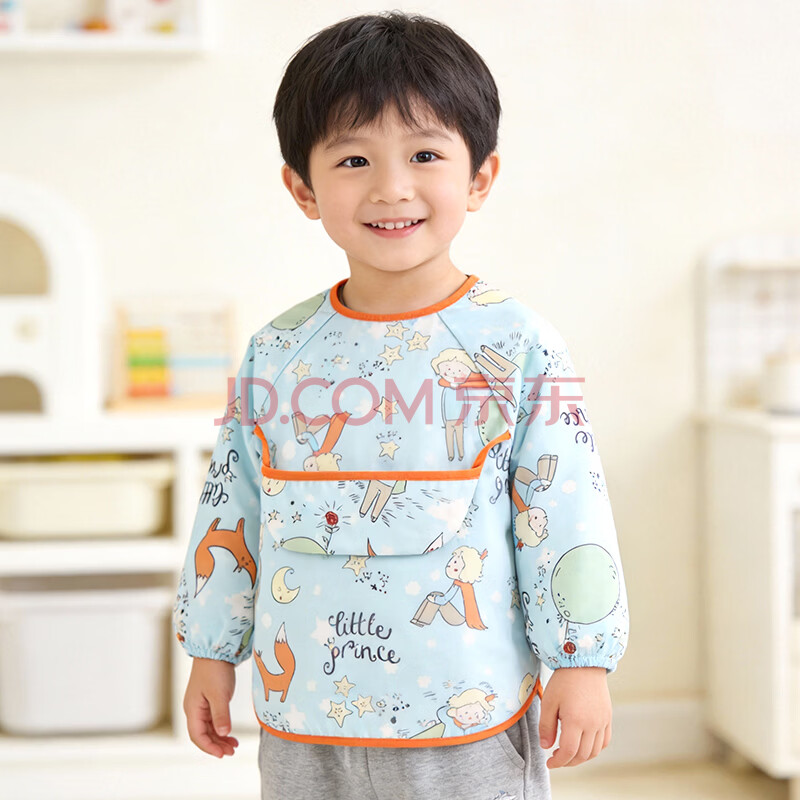 商品相册:9i9宝宝吃饭罩衣纯棉长袖防水婴儿童围兜画画衣幼儿园围裙A149王子第1张/共9