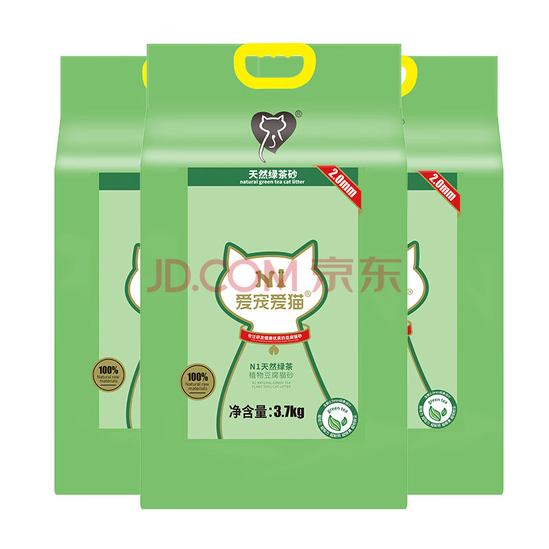 商品相册:N1 爱宠爱猫n1绿茶纯豆腐猫砂3包套装11.1kg升级2.0颗粒易结团可冲厕所第
