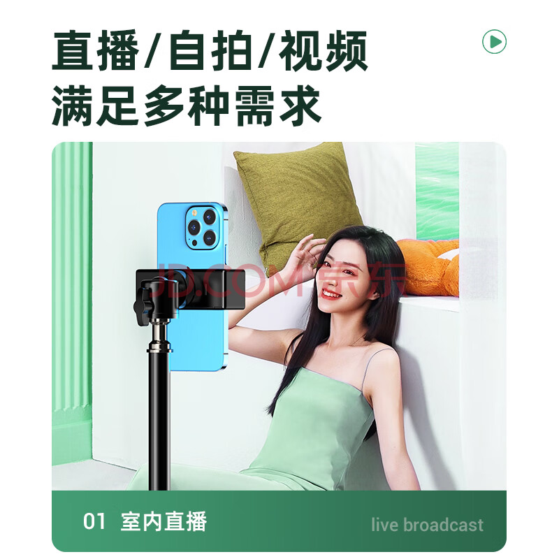 商品相册:毕亚兹【2.1米】手机支架落地直播三脚架 自拍杆网红主播站立式 桌面便携户外伸缩折叠固定三角支撑架B43第