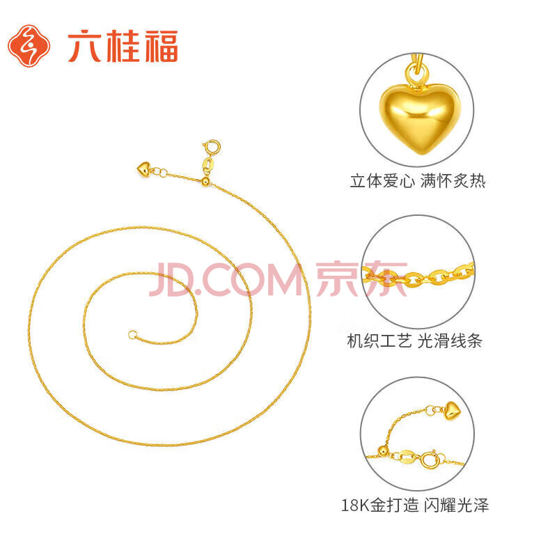 商品相册:六桂福珠宝 黄18K金项链 炙热的心 爱心可调节项链女 EK0300038第