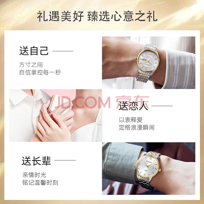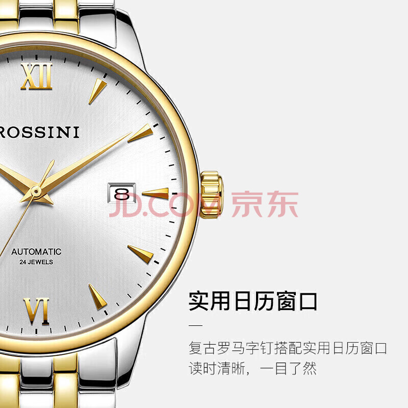 商品相册:罗西尼(ROSSINI)手表男手表女 情侣手表商务国表机械表白盘钢带517773/517774第