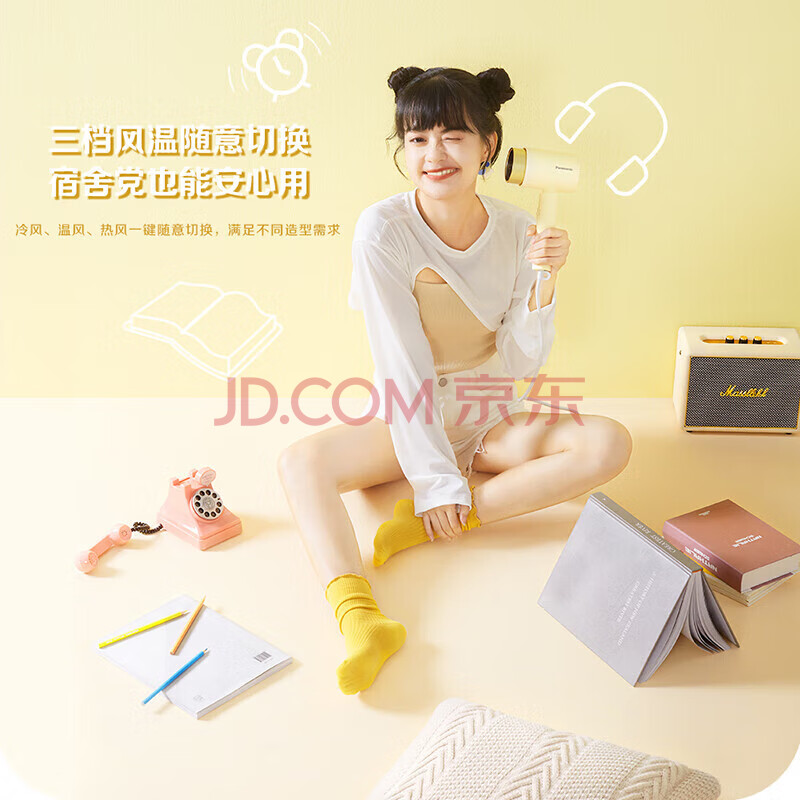 商品相册:Panasonic 松下电吹风机 小吹筒 负离子恒温护发家用 大功率速干 宿舍学生吹风机 EH-WNE5H 海盐苏打蓝第