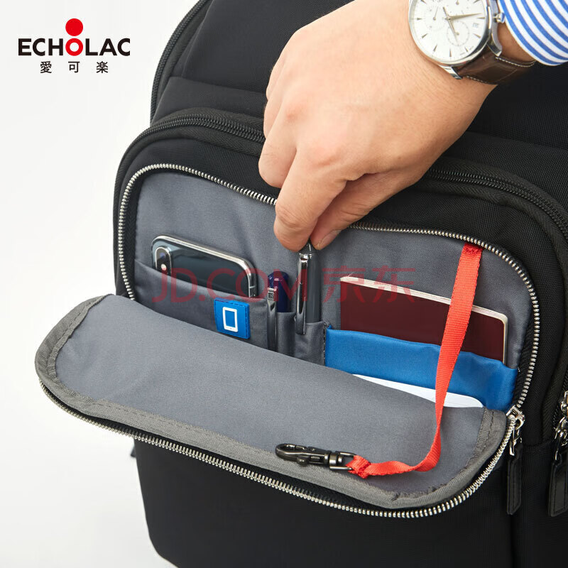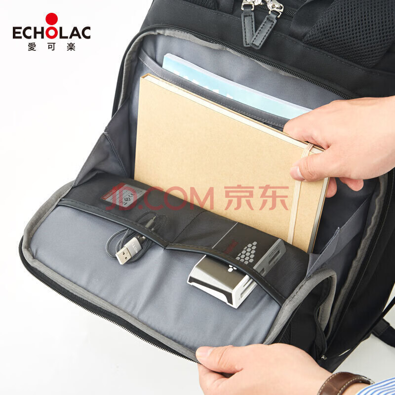 商品相册:爱可乐(Echolac)双肩电脑背包大容量男商务电脑包多功能 17英寸黑色通勤包CKP745第