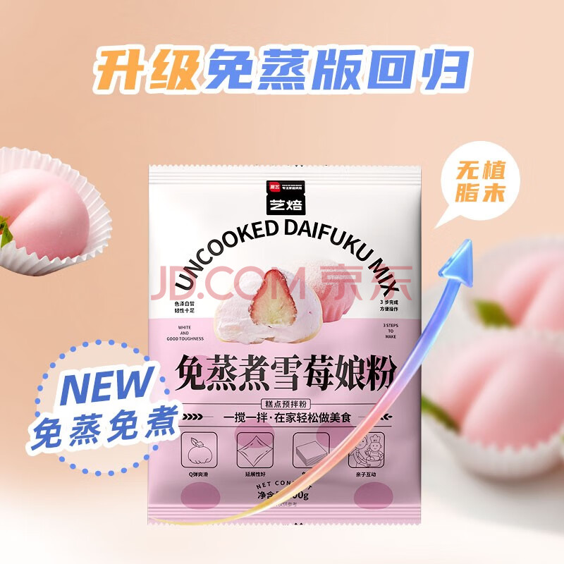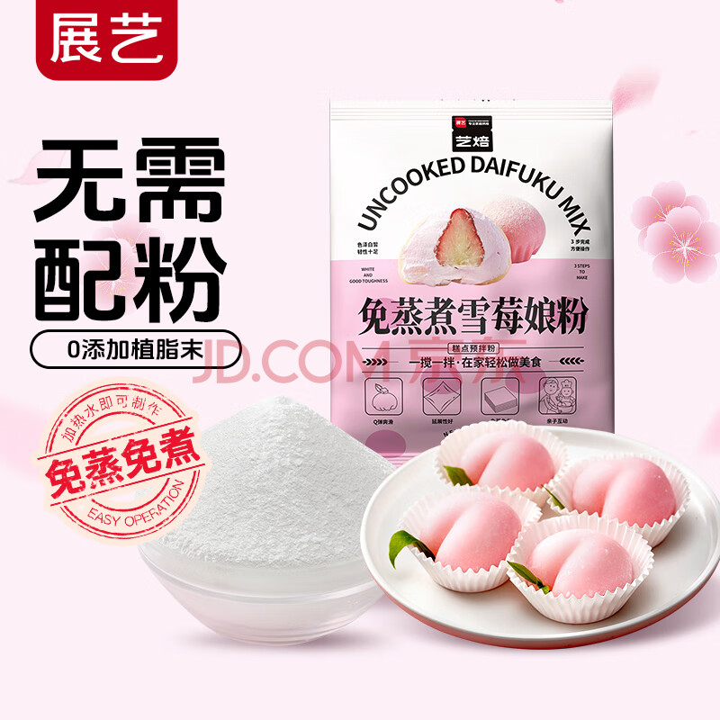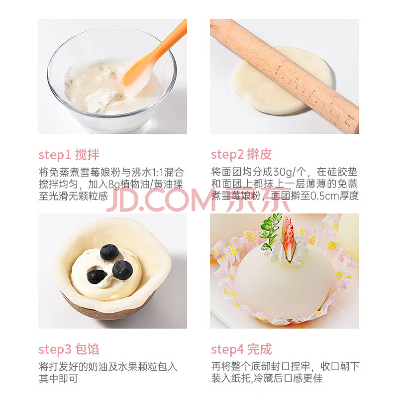 商品相册:展艺艺焙 免蒸煮雪莓娘粉200g 雪媚娘预拌粉冰皮糯米粉烘焙原料第