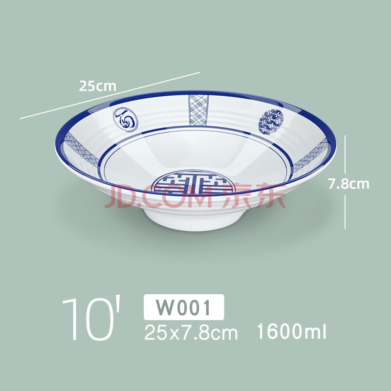 商品相册:富丞 密胺拉面碗 牛肉面碗 商用家用食堂餐具 大碗10寸 25*7.8cm 1600ml 2个装第