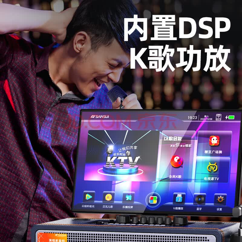 商品相册:山水(SANSUI)广场舞音响带显示屏家庭ktv音响套装户外便携视频机智能音箱触摸一体机Q109电木吉他民谣乐器音箱第