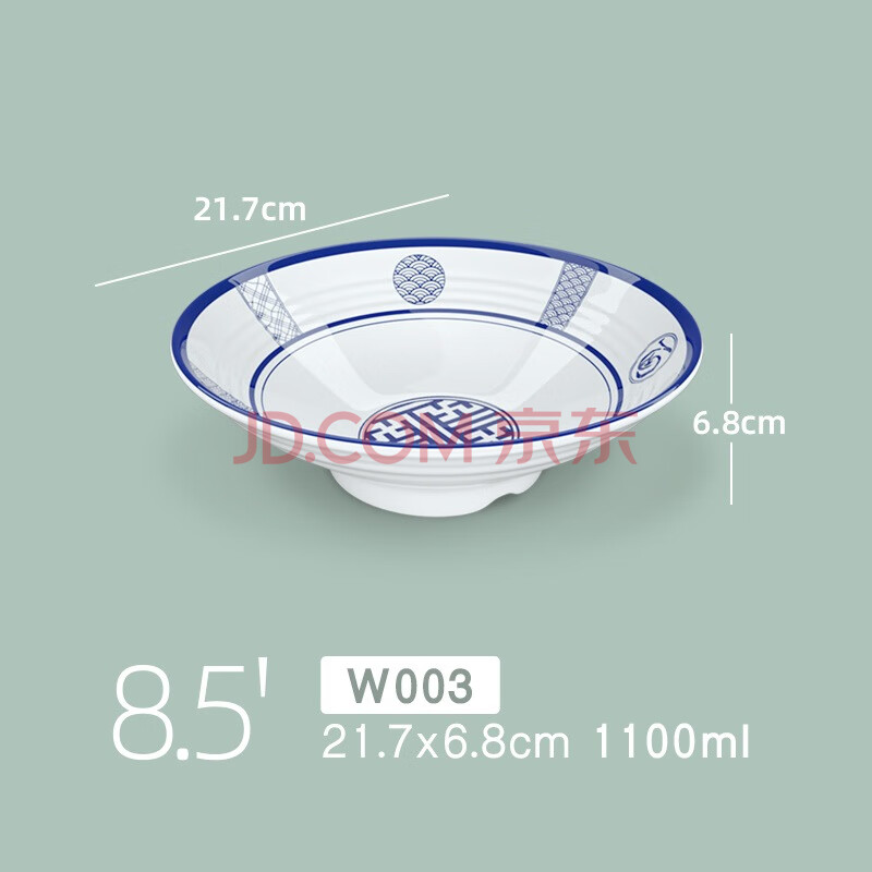 商品相册:富丞 密胺拉面碗 牛肉面碗 商用家用食堂餐具 大碗8.5寸 21.7*6.8cm 1100ml 2个装第