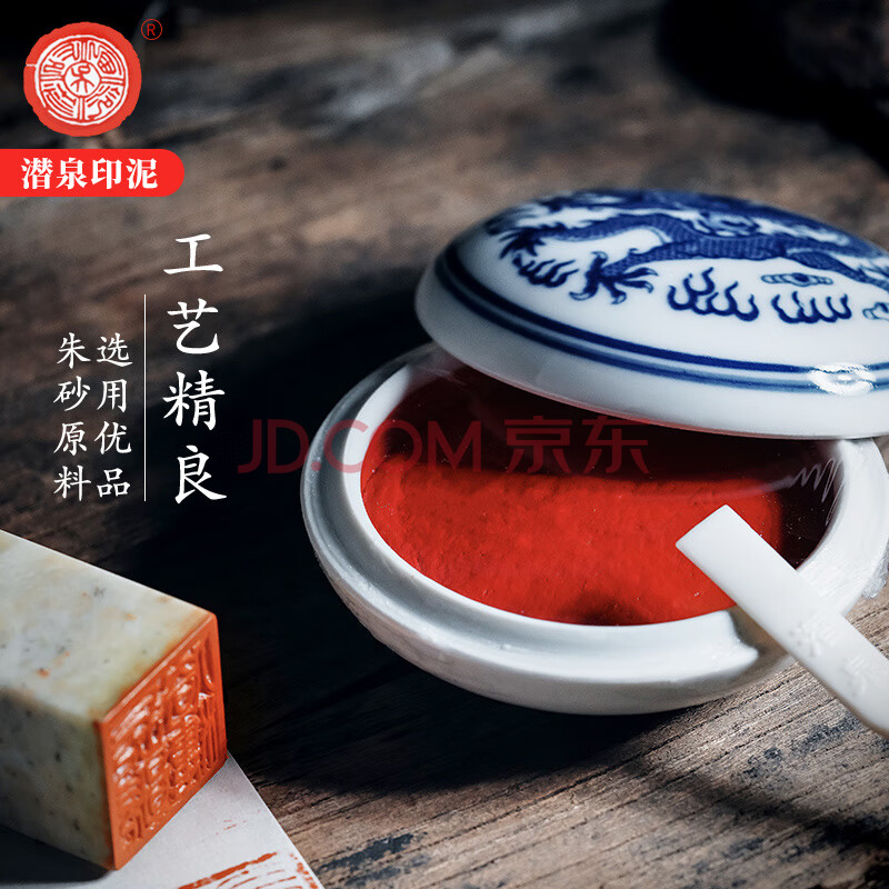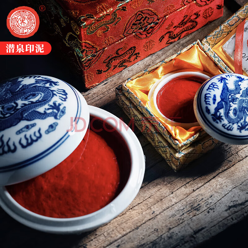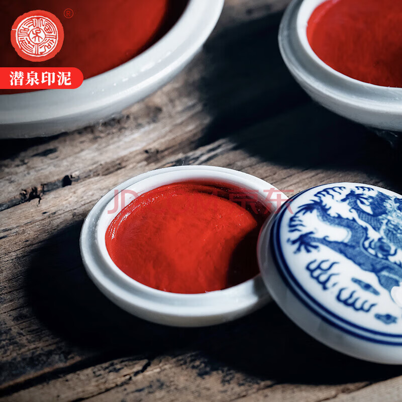 商品相册:【全网低价,真便宜直播间】荣宝斋上海西泠印社潜泉印泥文房四宝书法绘画篆刻印章古法手工红色陶瓷锦盒书画印泥 青花光明朱砂印泥15克第