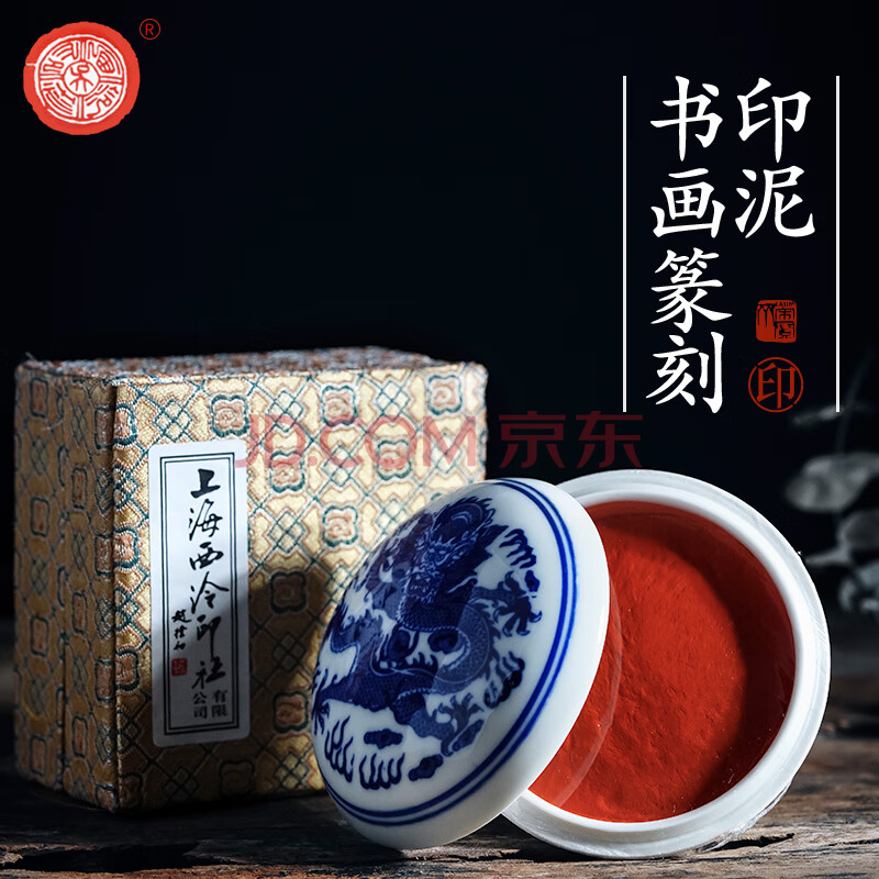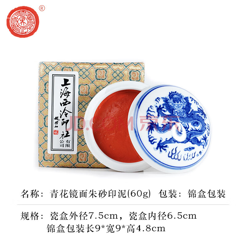 商品相册:【全网低价,真便宜直播间】荣宝斋上海西泠印社潜泉印泥 文房四宝书法绘画篆刻印章古法手工红色陶瓷锦盒书画印泥青花镜面朱砂印泥60克第