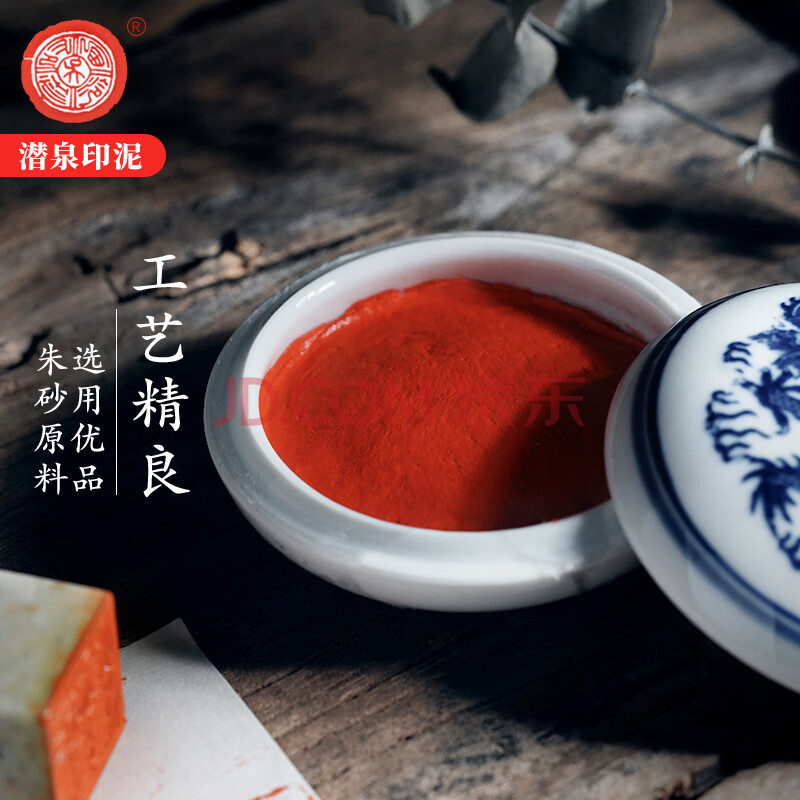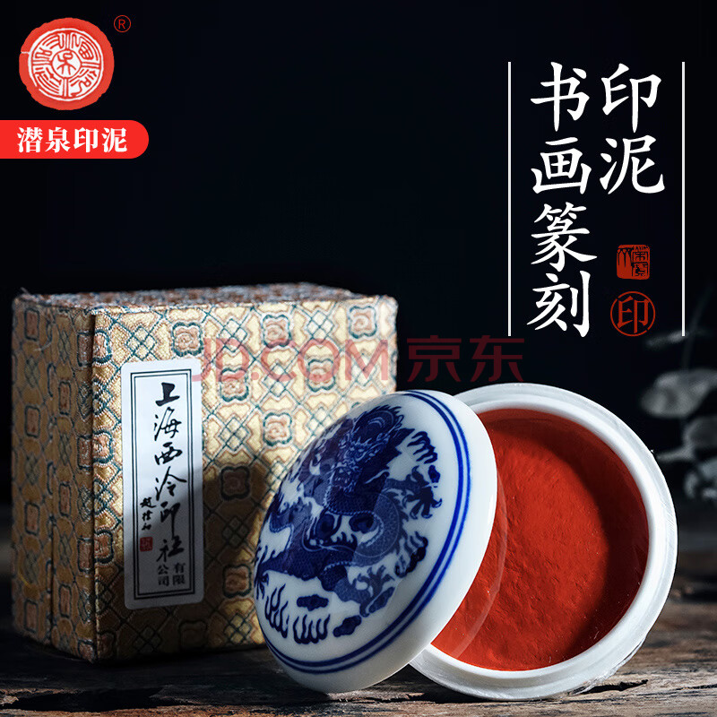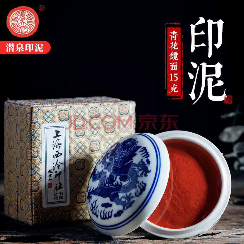 商品相册:【全网低价,真便宜直播间】荣宝斋上海西泠印社潜泉印泥 文房四宝书法绘画篆刻印章古法手工红色陶瓷锦盒书画印泥青花镜面朱砂印泥15克第