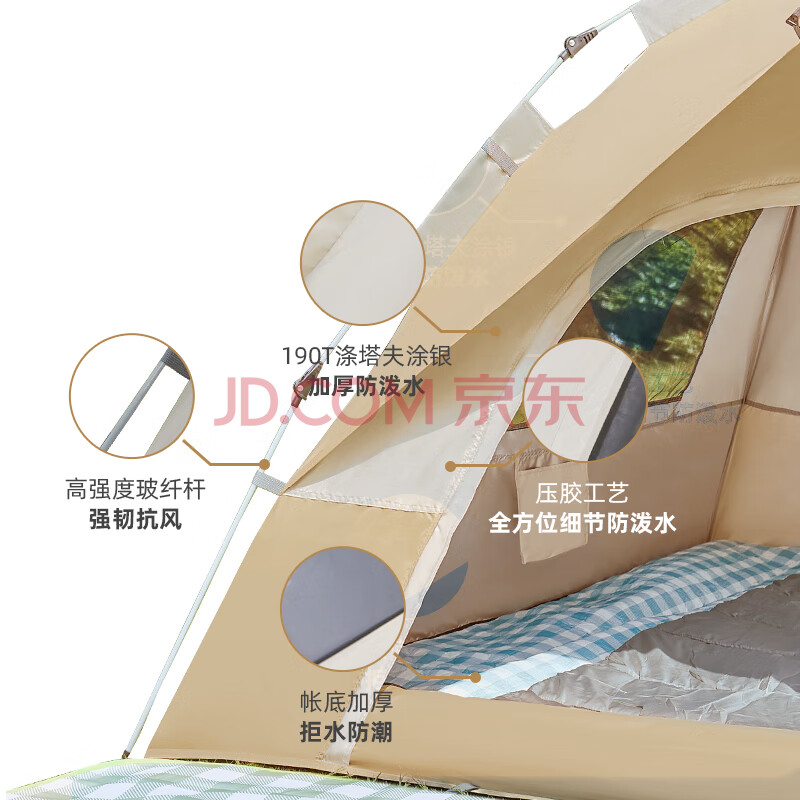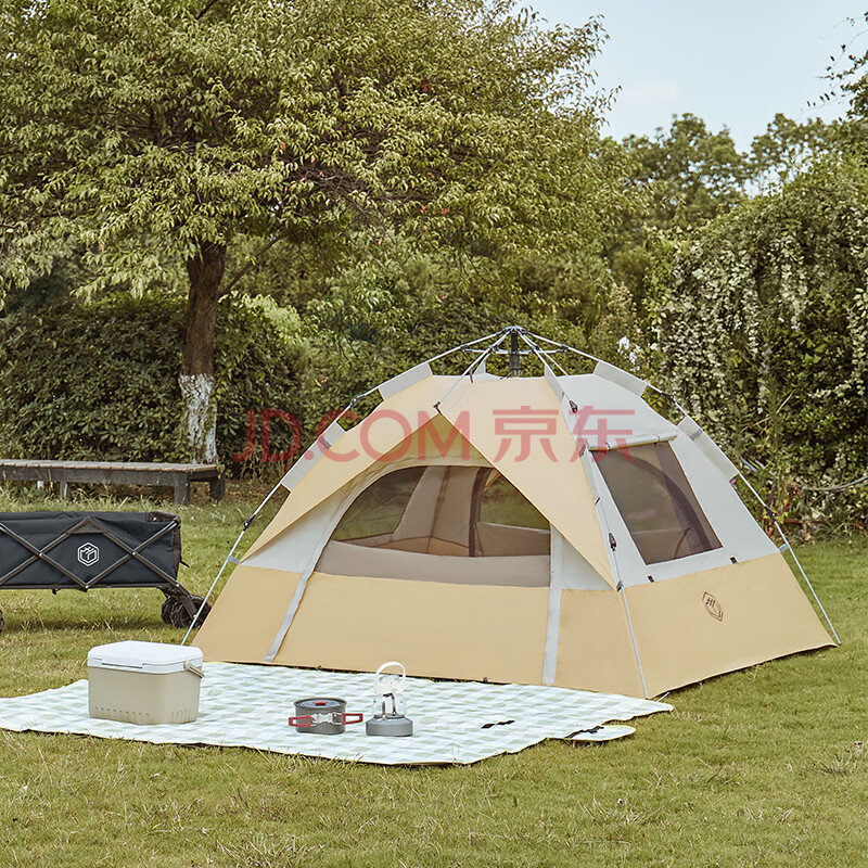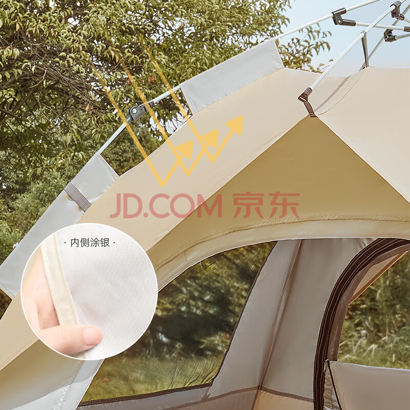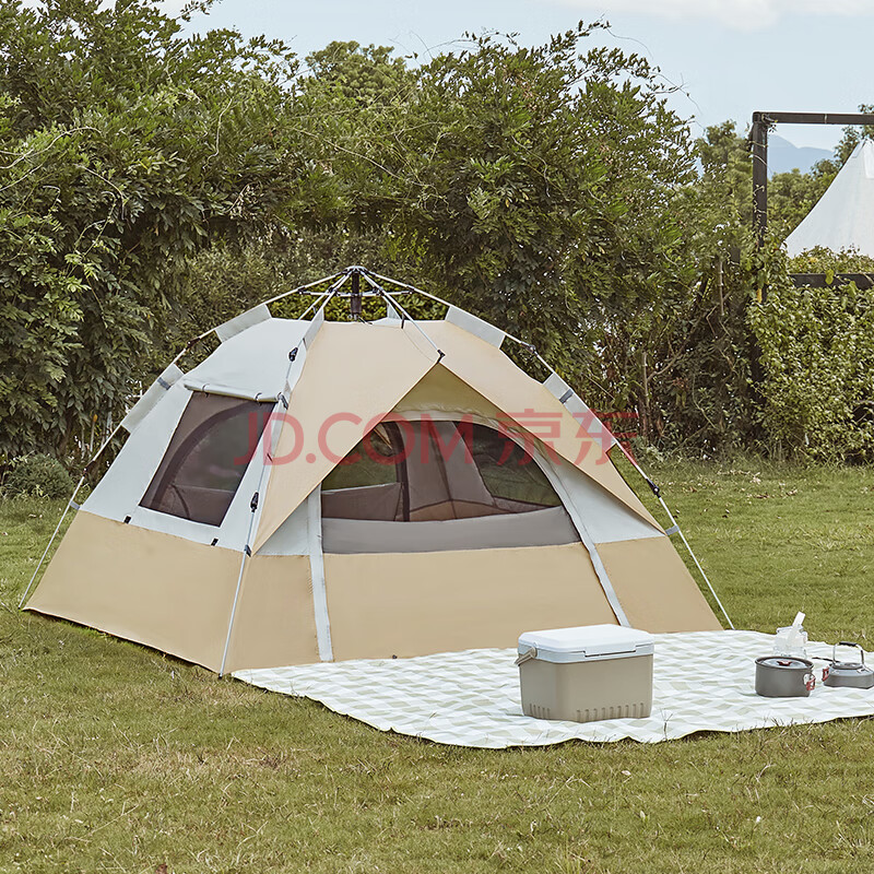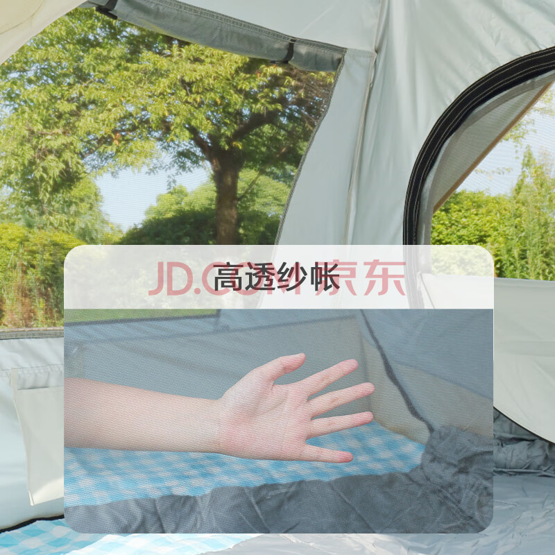 商品相册:京东京造 全自动速开帐篷4㎡公园户外露营帐篷3-4人大空间防晒防风第
