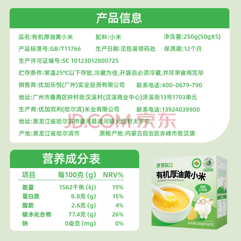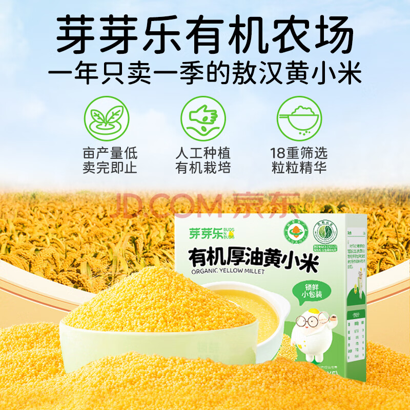 商品相册:芽芽乐敖汉有机黄小米250g儿童厚油小米杂粮营养粥新米送婴儿宝宝辅食谱第