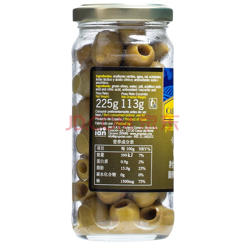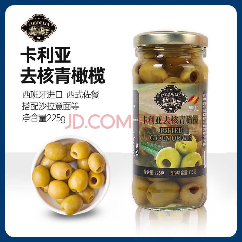 商品相册:卡利亚去核青橄榄罐头225g 西班牙进口 意面披萨西餐鸡尾酒沙拉配料第