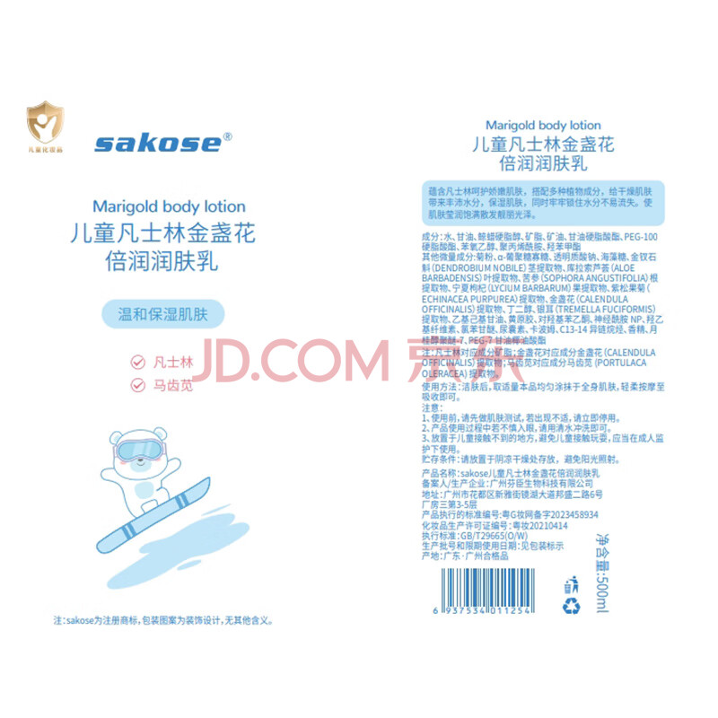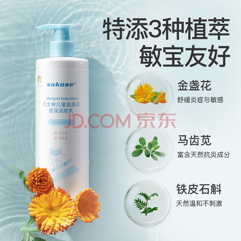 商品相册:sakose儿童凡士林金盏花身体乳500ml四季补水保湿干燥皮肤婴幼儿专用第