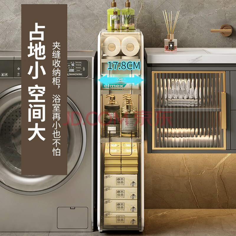 商品相册:JEKO&JEKO卫生间置物架夹缝收纳柜浴室厕所洗手间落地置物柜18cm宽三层第1张/共8