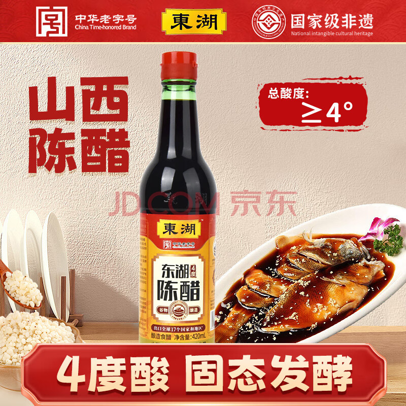 商品相册:东湖山西陈醋4度420ml 山西特产中华老字号 凉拌炒菜腌制第