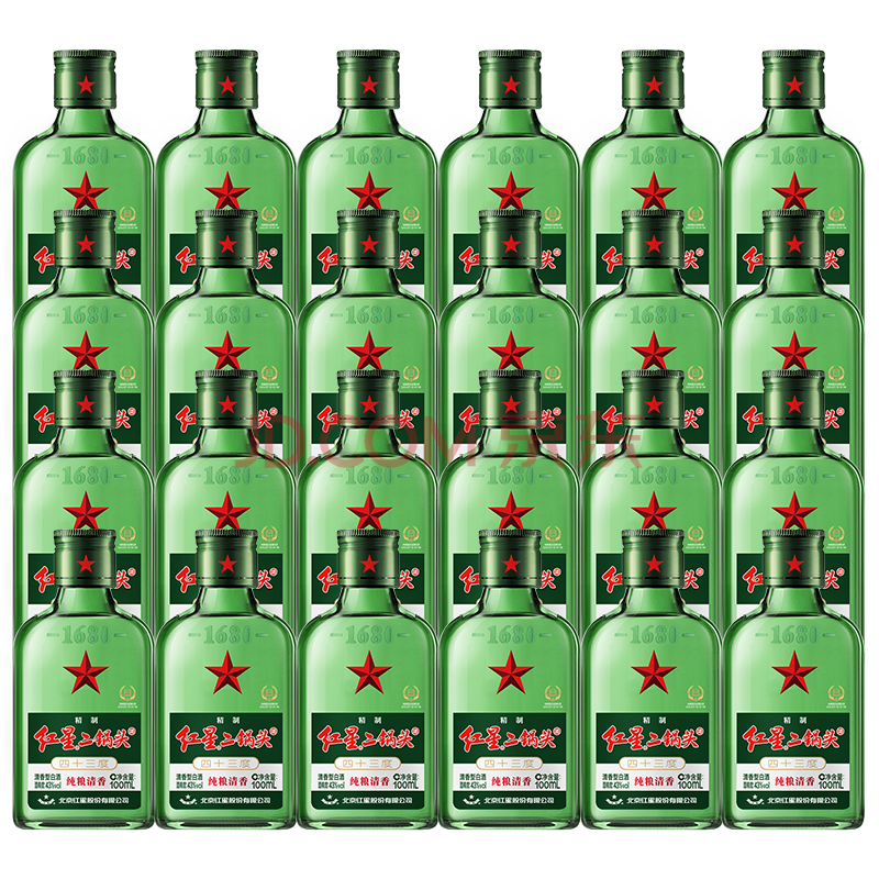 商品相册:红星二锅头 小二 清香型白酒 43度 100ml*24瓶 整箱装 纯粮口粮酒第
