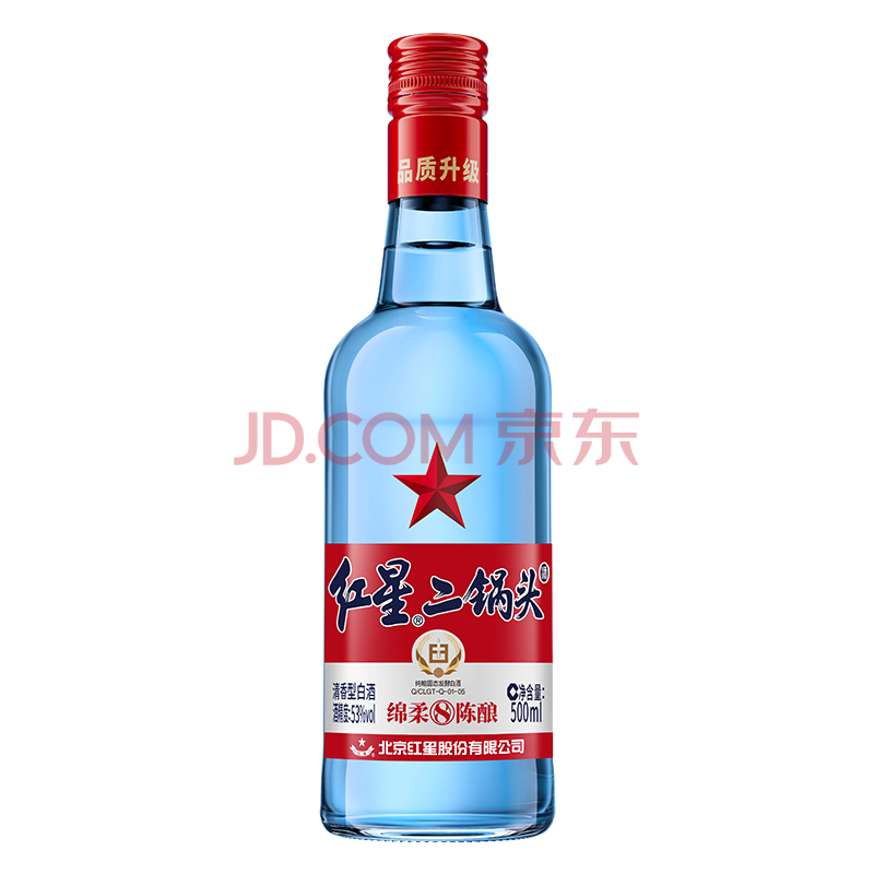商品相册:红星二锅头 蓝瓶绵柔8陈酿 清香型白酒 53度 500ml 单瓶装 纯粮口粮酒第