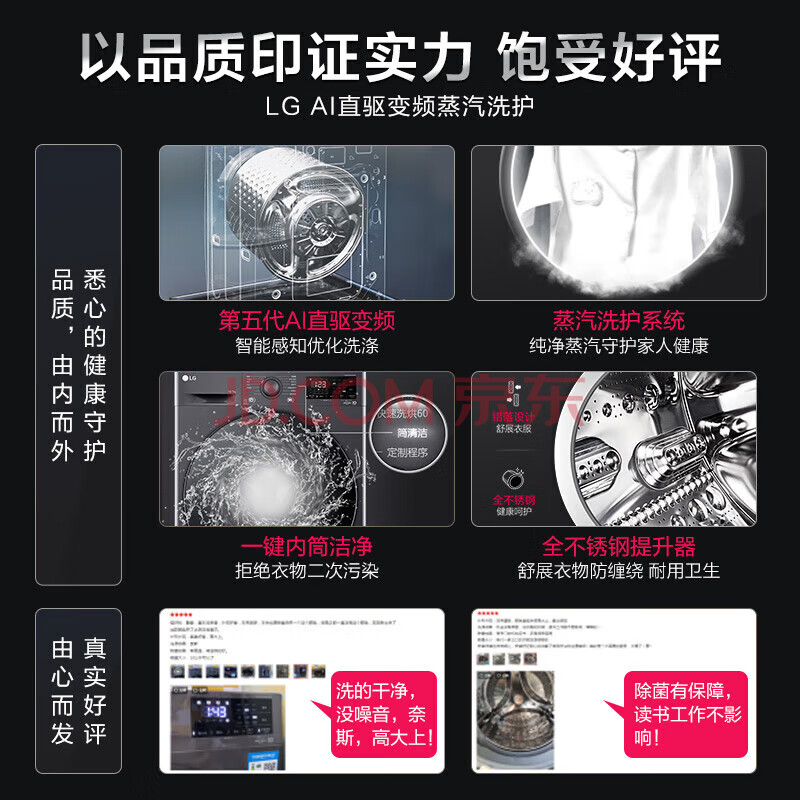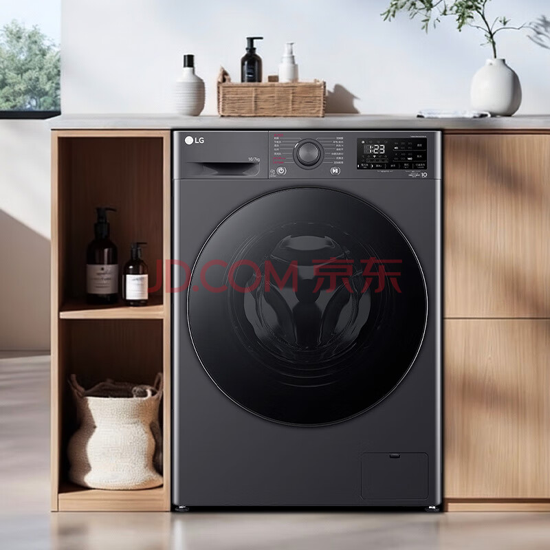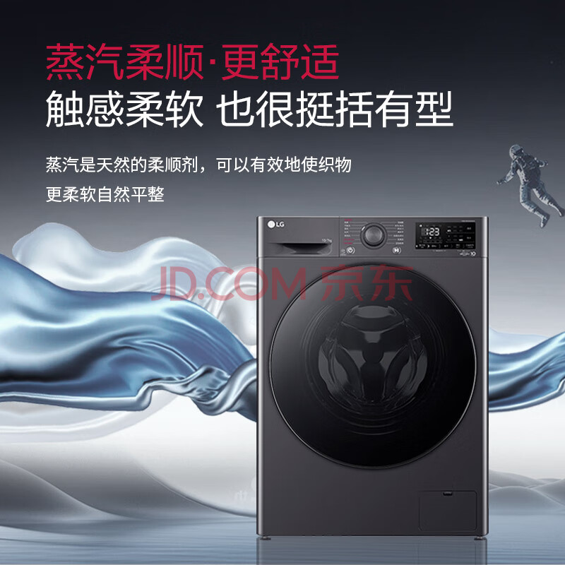 商品相册:LG星云黑 10KG全自动洗衣机带烘干一体 超薄滚筒洗烘 健康蒸汽除菌 AI直驱变频 AI智慧洗 FCY10R4M第