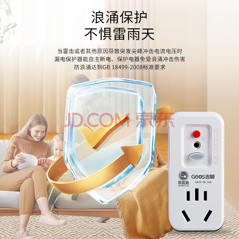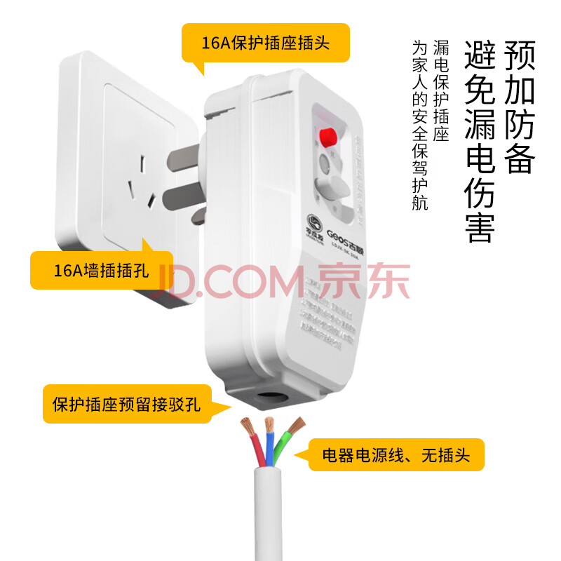 商品相册:吉顺16a漏电保护插头4000W排插座大功率空调咖啡机开关三脚插排插线板 16A接线版第