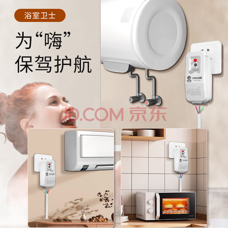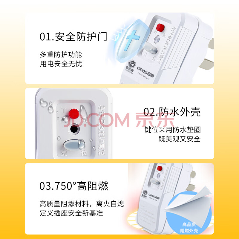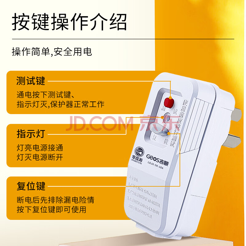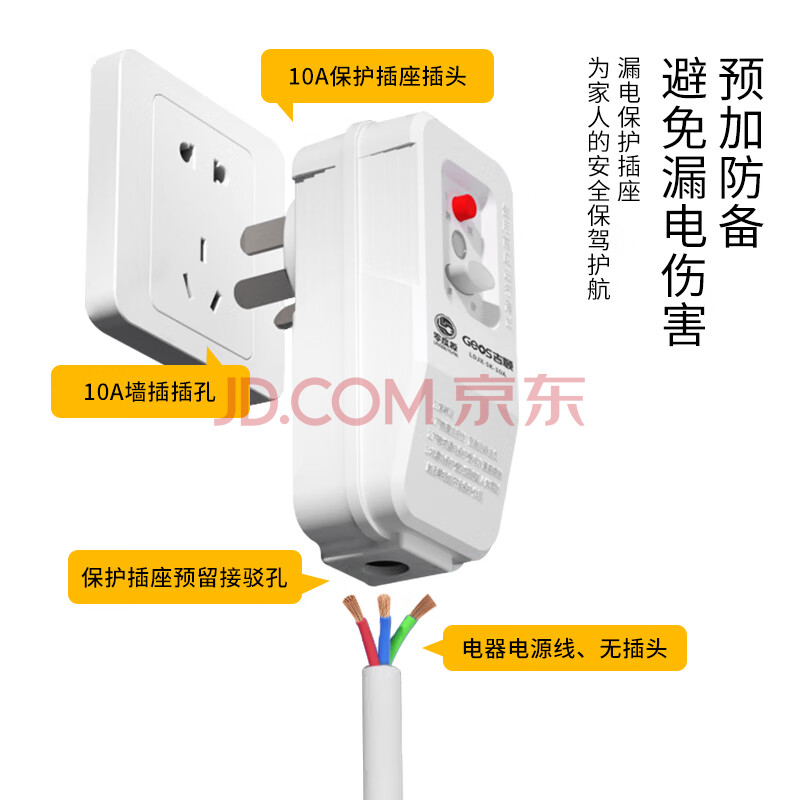 商品相册:吉顺漏电保护插头热水器三脚漏保插座空调咖啡机保护器开关排插 10A接线版第