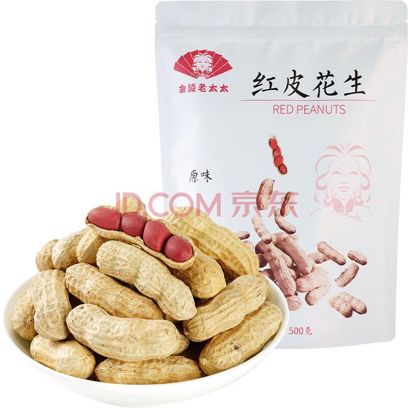 商品相册:金陵老太太红皮花生500g原味无添加干炒熟带壳小粒花生米炒货零食大袋第