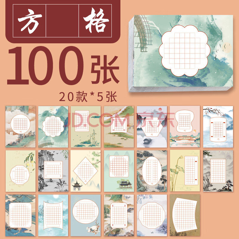 商品相册:六品堂方格硬笔书法练习用纸a4比赛专用纸中国风小学生古诗词书写练字本书法纸第