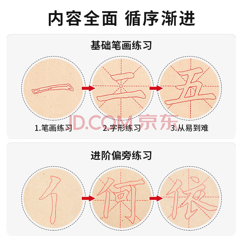 商品相册:六品堂毛笔字帖初学者专用入门描红套装书法练字儿童小学生1-3年级同步临摹练习册欧体中楷毛笔字练习纸第
