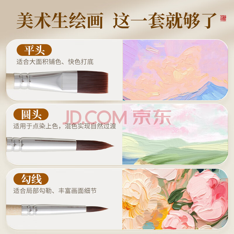 商品相册:六品堂水粉画笔丙烯水彩笔套装美术生专用绘画尼龙毛笔刷果绿色杆水彩笔初学者学生工具第