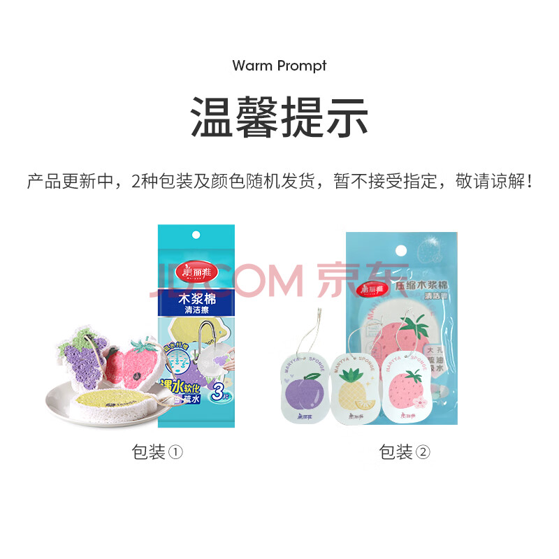 商品相册:美丽雅木浆棉3片宝宝洗碗海绵百洁布婴儿洗碗布刷碗不易沾油吸水去油污第