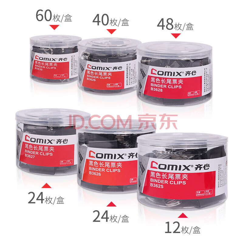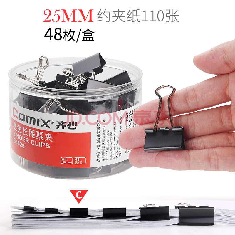 商品相册:齐心(COMIX) 黑色易分类长尾夹/长尾票夹 黑色长尾夹 筒装 黑色25mm-48只 B3628第