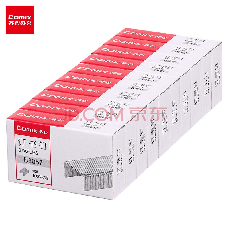 商品相册:齐心(COMIX)订书钉 订书机用装订器书针厚层加厚订书针 办公文具 10盒装 B3057 订书钉/小钉 10#第