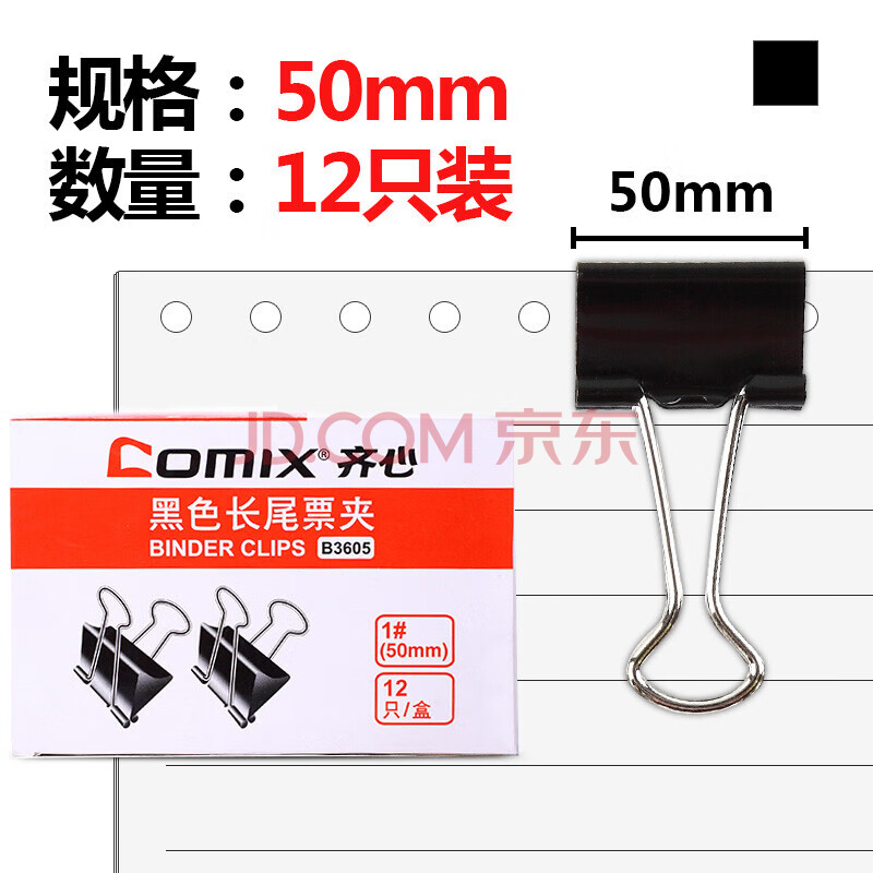 商品相册:齐心(Comix)黑色长尾夹票夹 大号50mm金属燕尾夹票据夹子 12只/盒 B3605 工具第